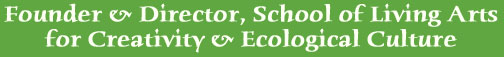 Angela's art and teaching are dedicated to the vision of humanity and the Earth living as one, and "the Earth restored to her pristine Beauty and full regenerative capacities." To learn more about Angela as an artist and to see her award-winning art, please visit www.angelamanno.com. To read a sample of her writing, please click on this link. Her other loves are organic gardening, flower arranging, preparing herbal remedies and cooking for friends and students with ingredients from her garden and local farms. One day she hopes to be able to raise animals to enhance the beauty, productivity and pleasure of the grounds of The School of Living Arts.